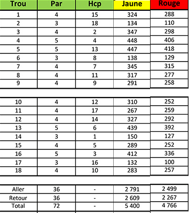Ce golf 18 trous par 72 a les caractéristiques suivantes :