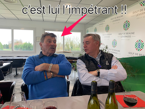 CE COUP DE CANIF DANS LA TRADITION S’EST TRADUIT PAR UN BEAU SUCCÈS : QUARANTE-QUATRE JOUEURS ET CINQUANTE -SEPT PARTICIPANTS AU REPAS, LE DERNIER AVEC GUILLAUME AUX FOURNEAUX. LE GOLF DE BEAUNE A FÊTÉ CET ÉVÉNEMENT AVEC QUELQUES BOUTEILLES DE CHAMPAGNE. DE LEUR CÔTÉ, AIRSHOT ET L’as ONT CONJOINTEMENT OFFERT À GUILLAUME UN CARTON DE BEAUNE LES TEURONS 2019.